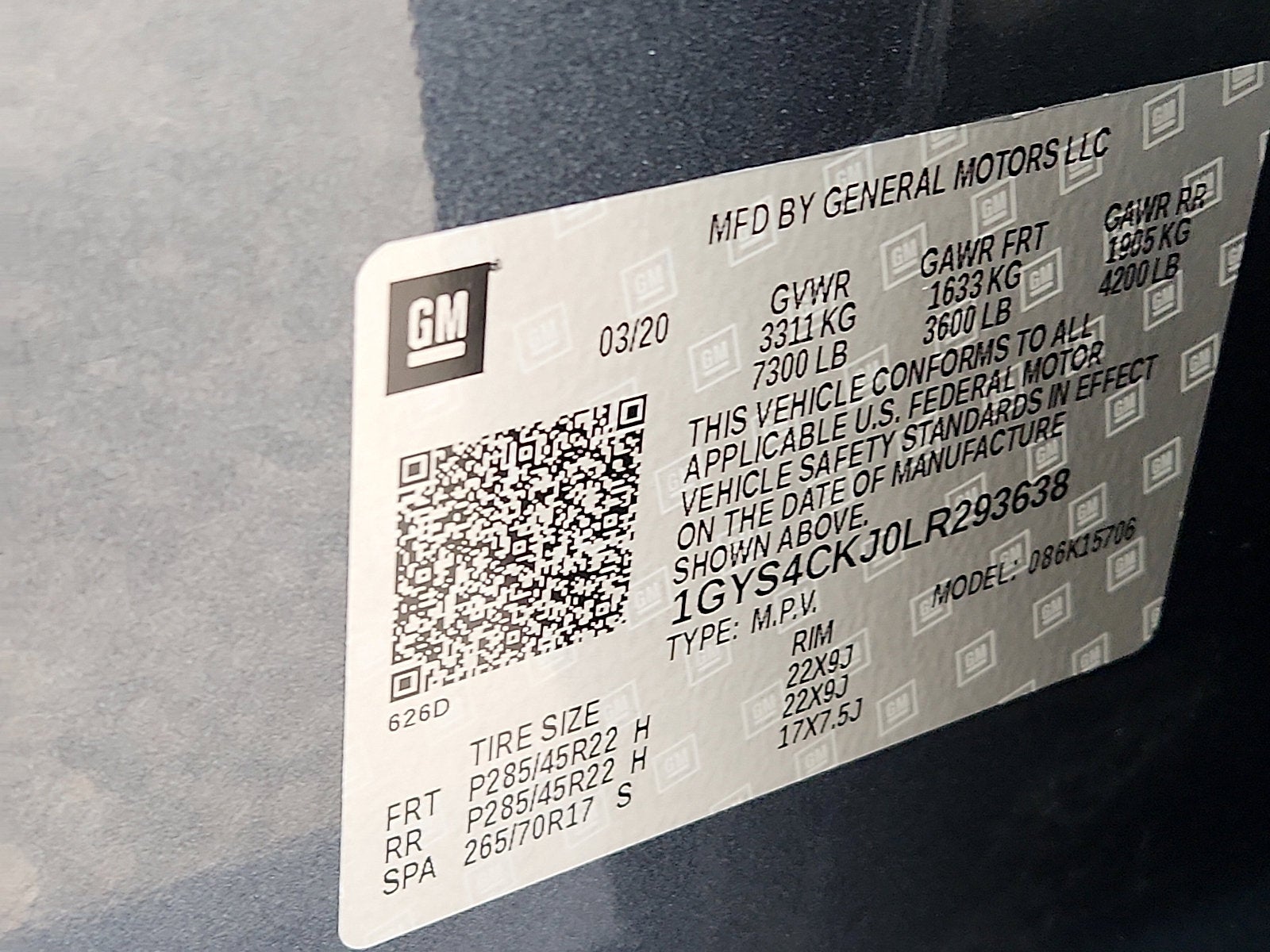 - Tires, P285/45R22 all-season, blackwall