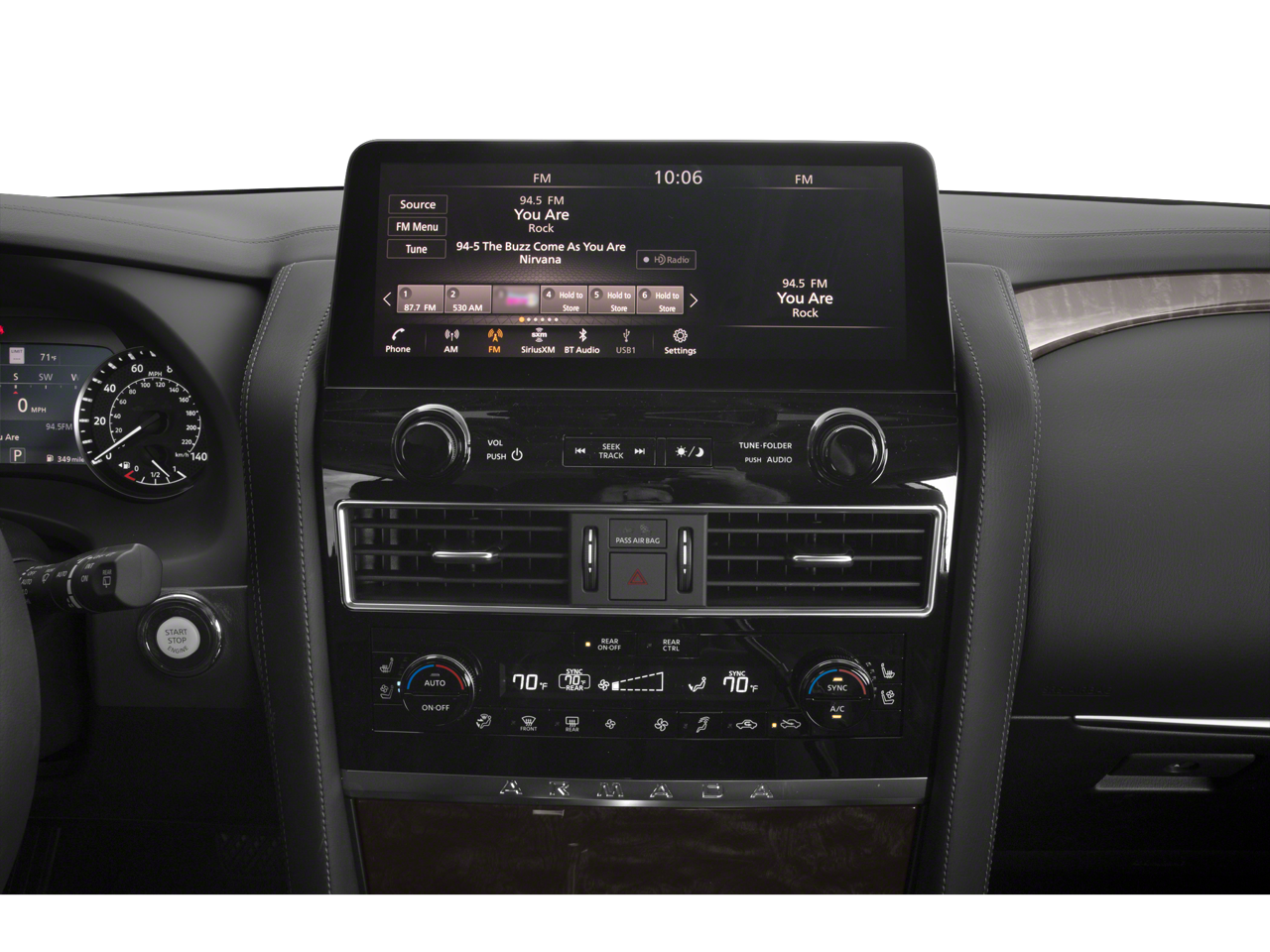 - Radio: NissanConnect w/SiriusXM -inc: 13-speaker Bose audio system, wireless Apple CarPlay, Android Auto, Nissan door to door navigation, 12.3" color display w/multi-touch control, SiriusXM Traffic and Travel Link w/three month complimentary trial access, NissanConnect Services powered by SiriusXM, Bluetooth® hands-free phone system, hands-free text messaging assistant and Wi-Fi hotspot
