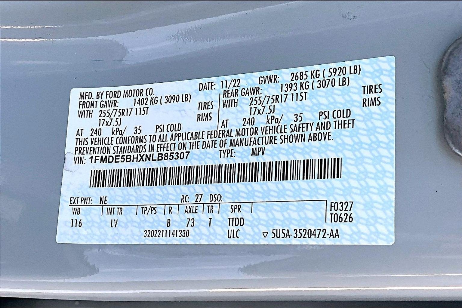 - Gross Axle Wt Rating - Rear (lbs): 3070