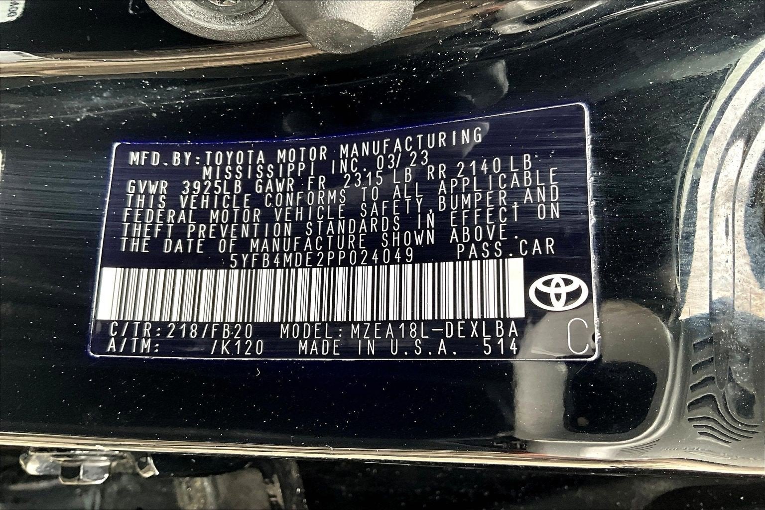 - Vehicle Name: Toyota Corolla