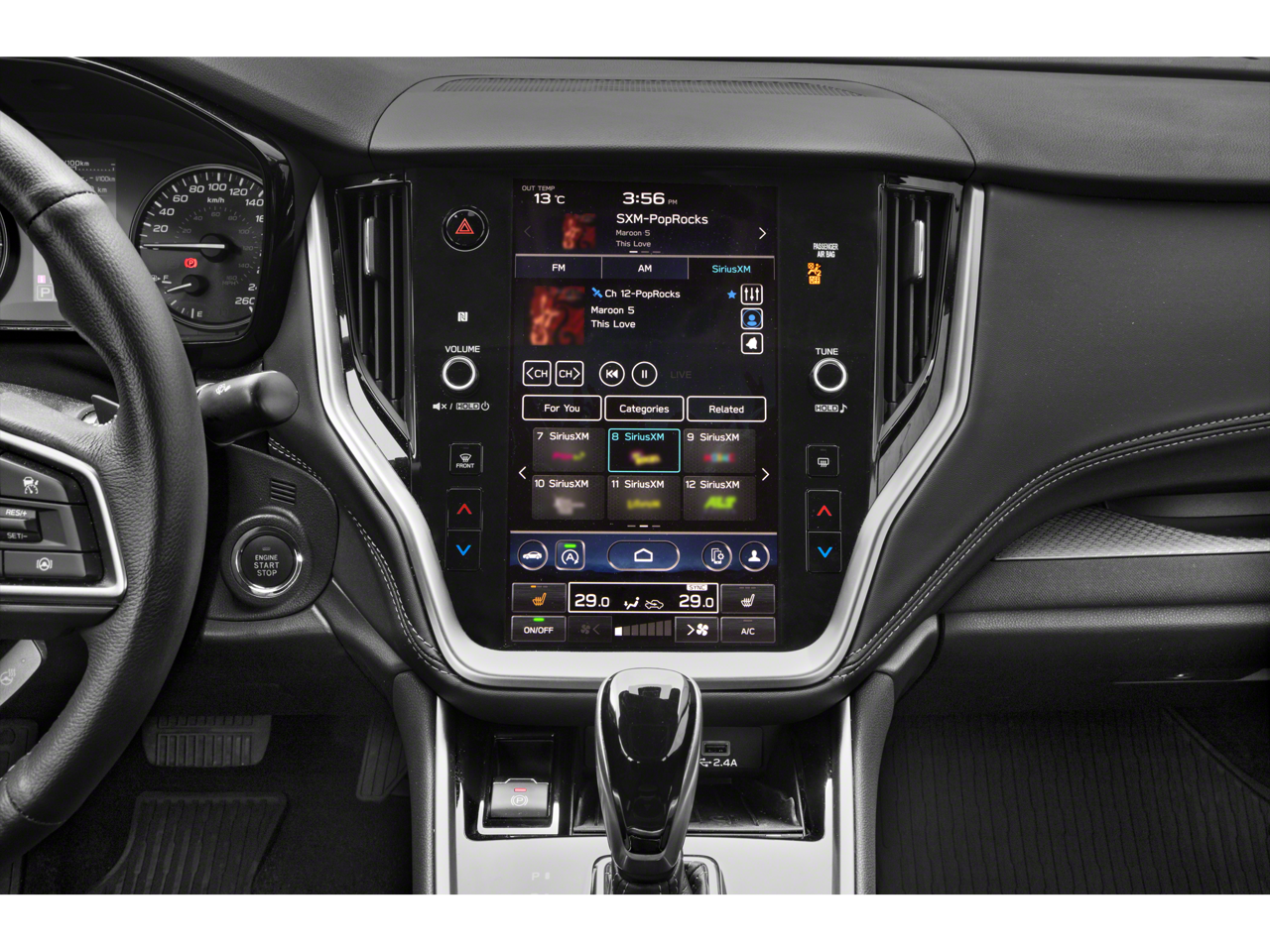 - Radio: Subaru STARLINK 11.6" Multimedia Plus Sys -inc: AM/FM stereo, HD Radio, valet mode, multi-touch gesture high resolution display screen, voice activated controls, Bluetooth audio streaming and hands-free phone connectivity w/SMS text messaging (refer to subaru.com for cell phone compatibility), Near Field Communication (NFC), iPod control capability, SiriusXM w/360L (4 months free platinum trial/subscription required after; available after launch, possibly in June 2023), SiriusXM Travel Link (4 months free trial/subscription required after), smartphone integration w/full screen view and wireless connection for Android Auto, Apple CarPlay and STARLINK cloud applications (refer to subaru.com for app availability), USB and Over The Air (OTA) audio system update, audio/Bluetooth steering wheel control switches, 6 speakers, 3.5mm illuminated front auxiliary input jack and illuminated front and rear USB-A and USB-C input/charge ports